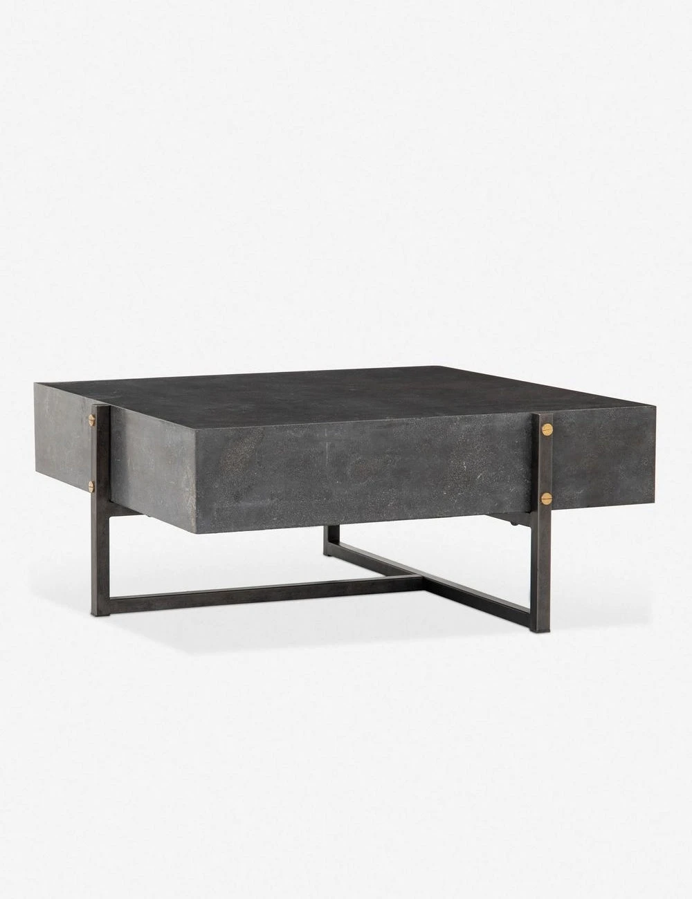 A statement-making, modern coffee table makes for the perfect centerpiece in your living space. Featuring a bold square shape in bluestone veneer, floating in a minimal black iron frame for an industrial finish.