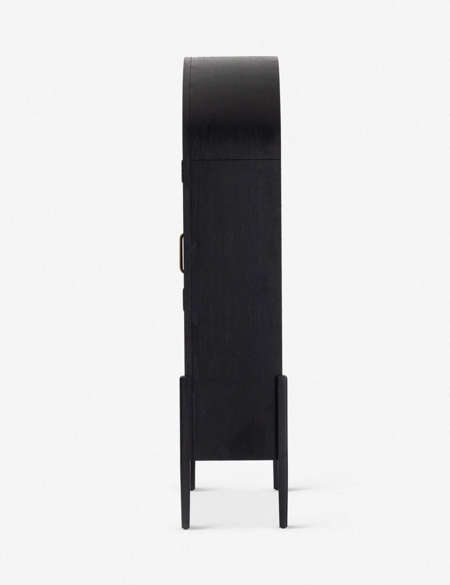 With its stately arched design, this curio cabinet is a showcase piece itself. Its beautifully-crafted solid oak cabinetry features four spacious interior shelves and a clear glass front, ready to display special-occasion dinnerware, favorite books, and treasures.