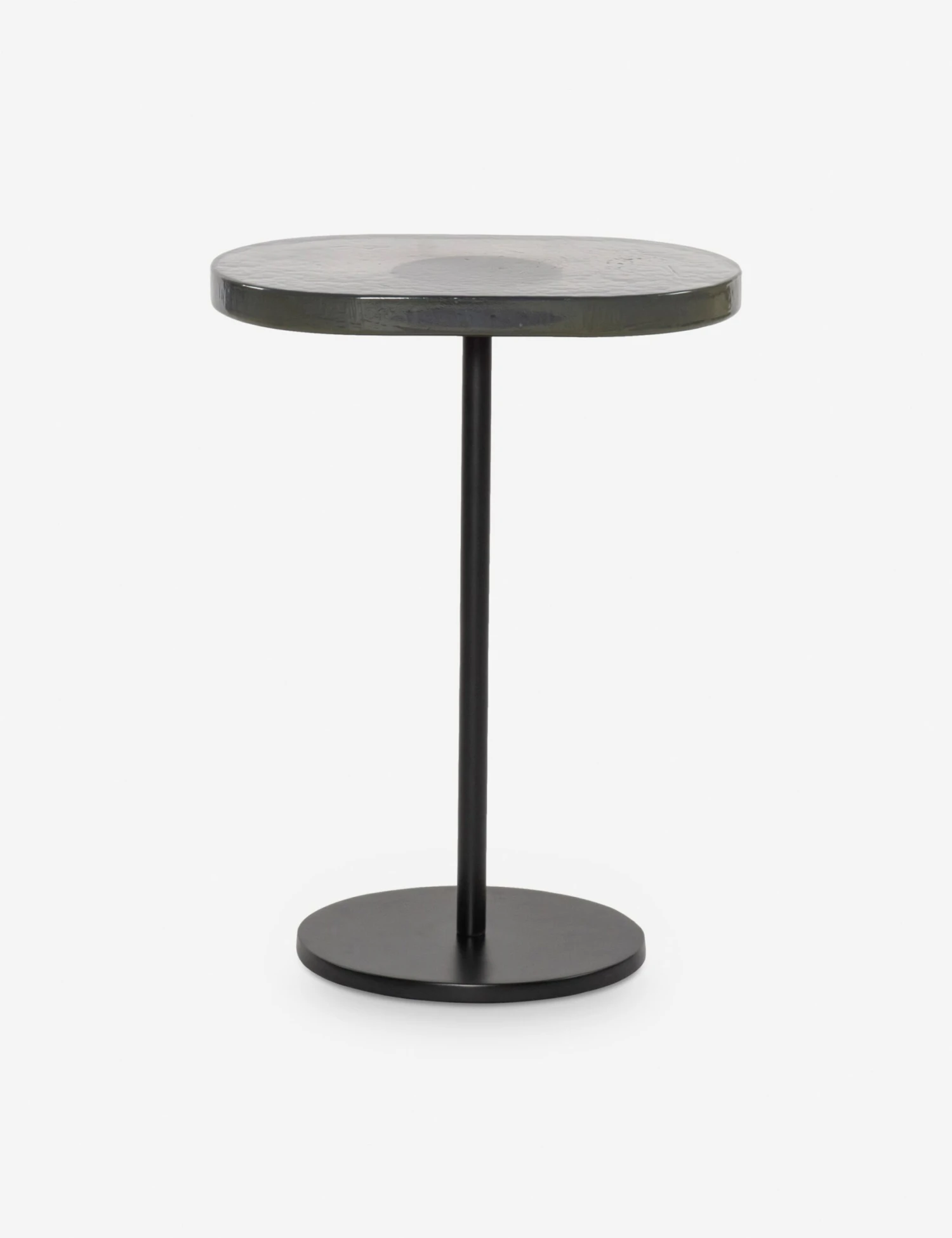 The Ario side table offers simple sophistication with its streamlined profile and retro edge. A cast-glass top fits into the slim iron frame, bringing a dose of vintage color that plays well in the light. We love this end table for timeless curations that mix new and old in a tasteful blend.