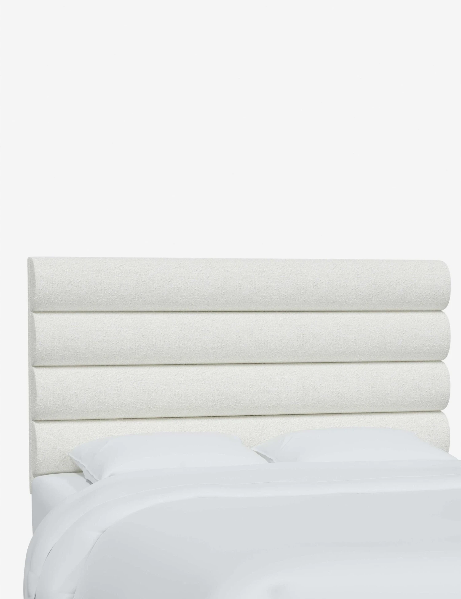 Plush sophistication abounds in this channel-tufted headboard. This trim design provides a grounding balance to any bedroom look with its crisp horizontal lines. In a variety of colors and fabrics, this headboard attaches to any standard bed frame for a fresh bedroom look.