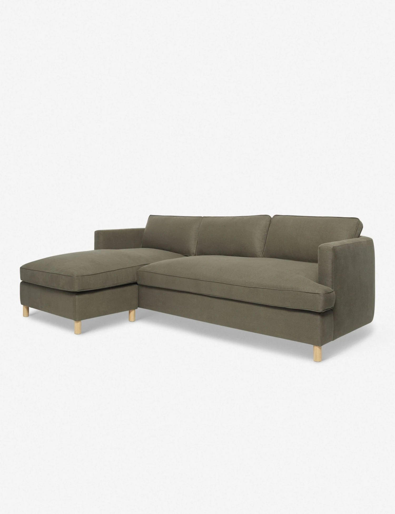 From the exclusive Ginny Macdonald collection for Lulu and Georgia, this classic sectional sofa features a curved back and plush, oversized cushions to bring a polished yet transitional look to your living room seating. Inspired by Ginny’s English heritage and handmade in Los Angeles, the collection fuses her British roots with her California lifestyle. This comfortable sectional is available in a variety of fabrics and colors, making it the perfect mix-and-match piece.