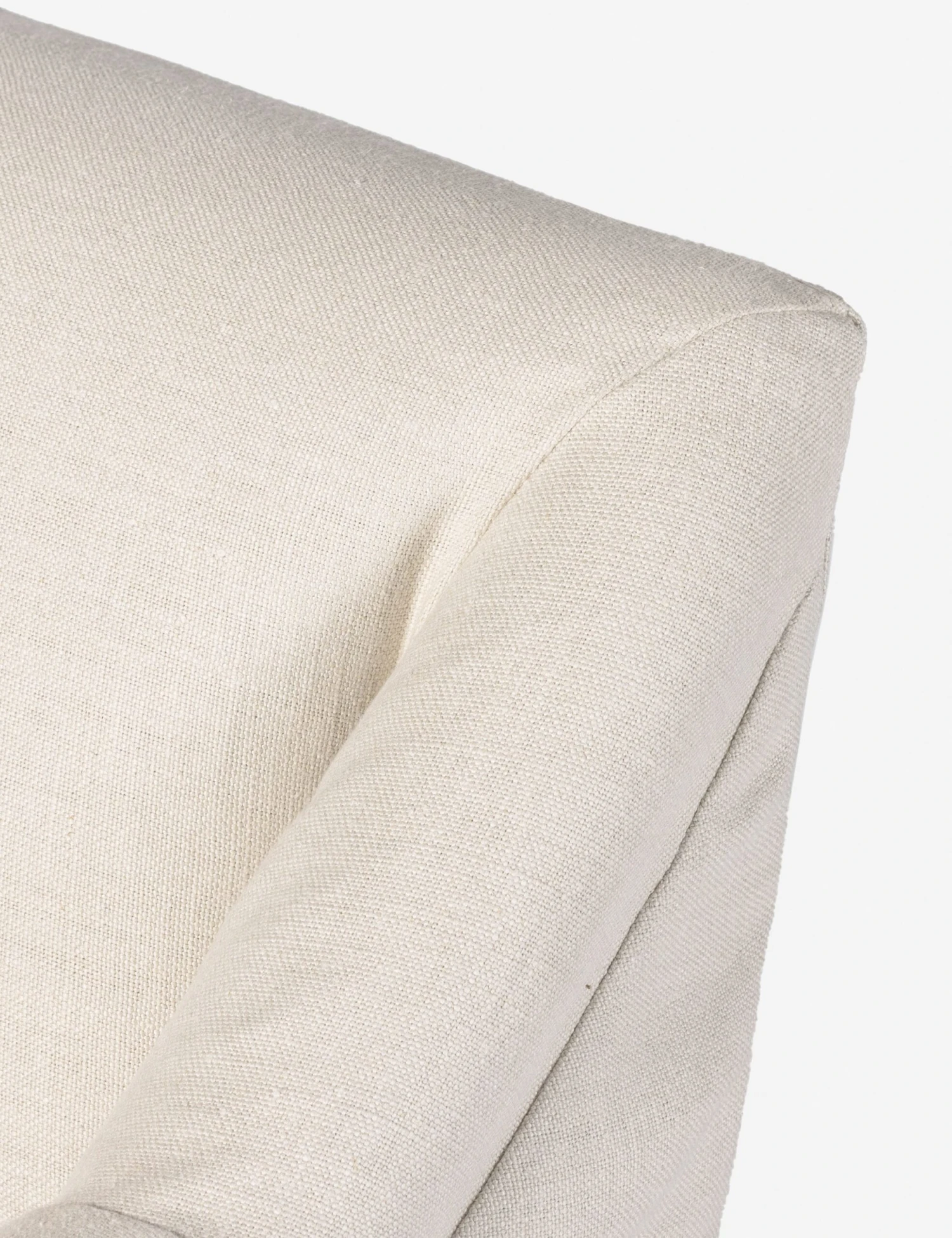 Bring comfort to elegance with the Breton dining chair. We love the classic look of the rolled arms draped in Belgian linen, fashioning a transitional dining seat with timeless appeal. Plus, the slipcover is machine-washable for that always-fresh feel in your dining room.