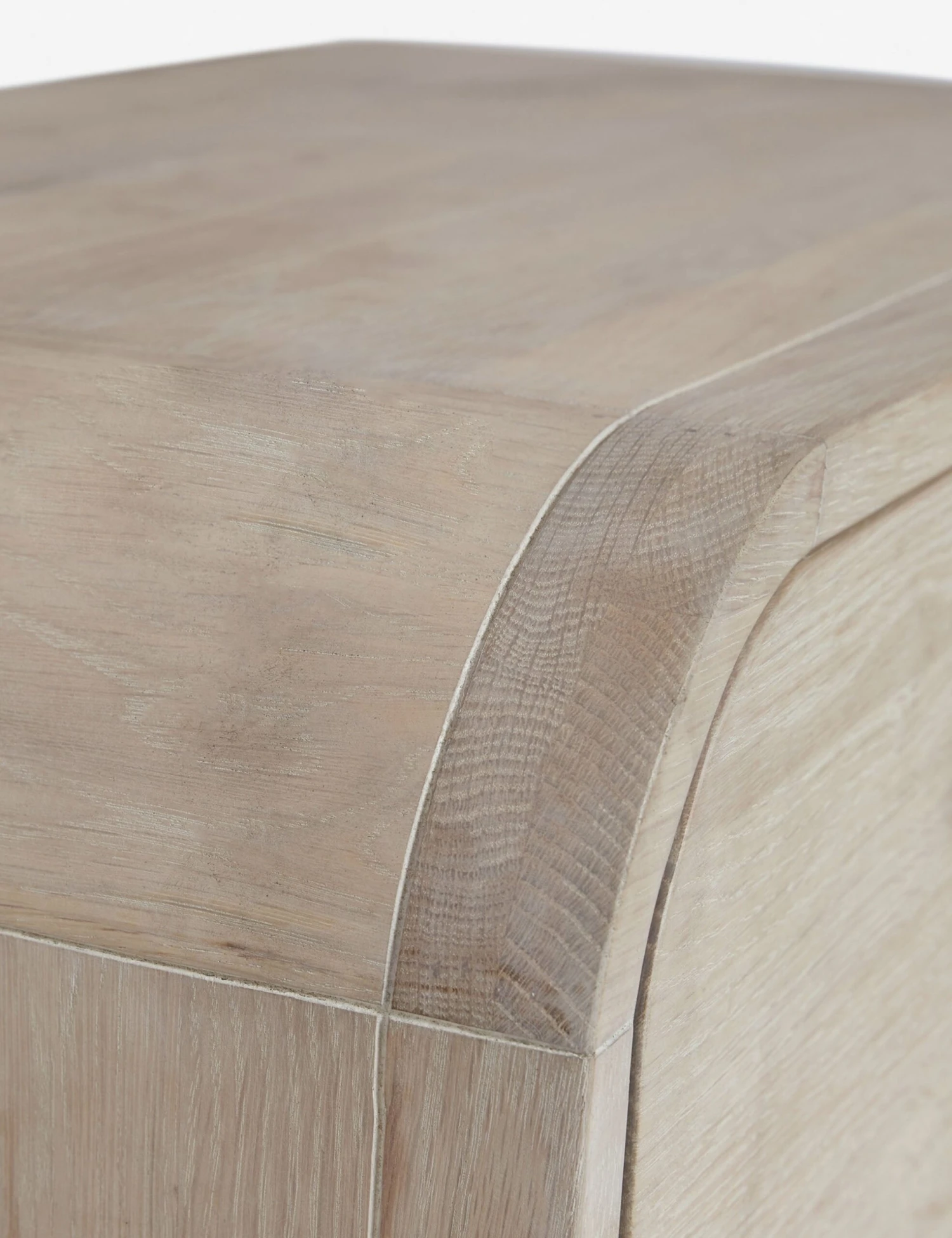The refined finish of this dresser appealingly compliments the arched corners of its understated design. It is fitted with sleek iron pulls and three roomy drawers to offer storage and style in equal measure. Pair this oak wood dresser with minimal accents for refined visual appeal.