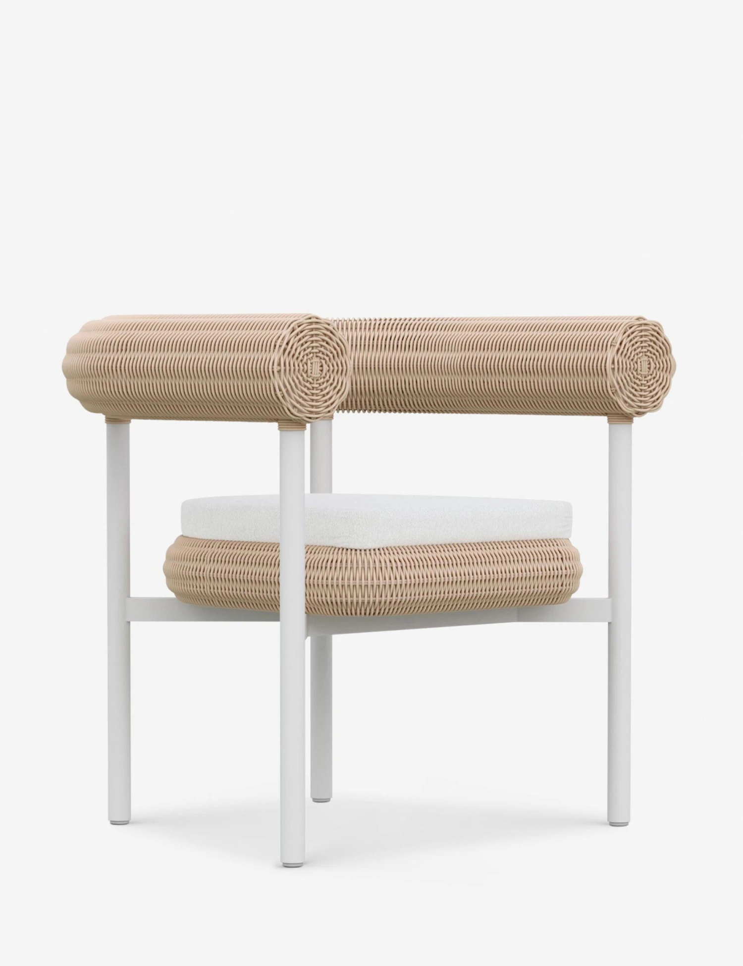 Thoughtfully dynamic and artfully refined—the Castaneda dining chair elevates indoor-outdoor style. The soft-lined silhouette is woven from all-weather wicker and topped with a removable performance cushion to bring plenty of texture with a modern edge. This chic dining seat sets a place for sculptural appeal at your table.