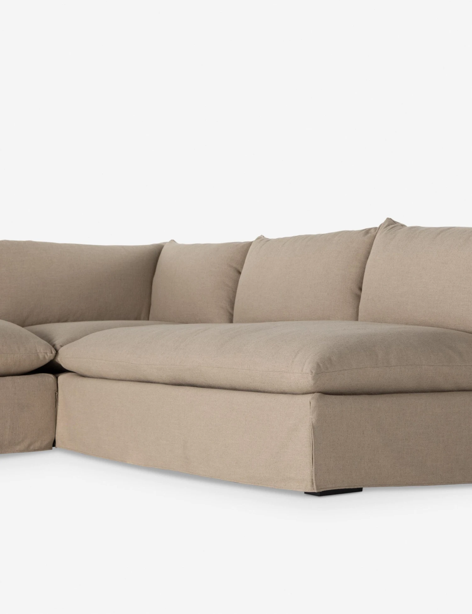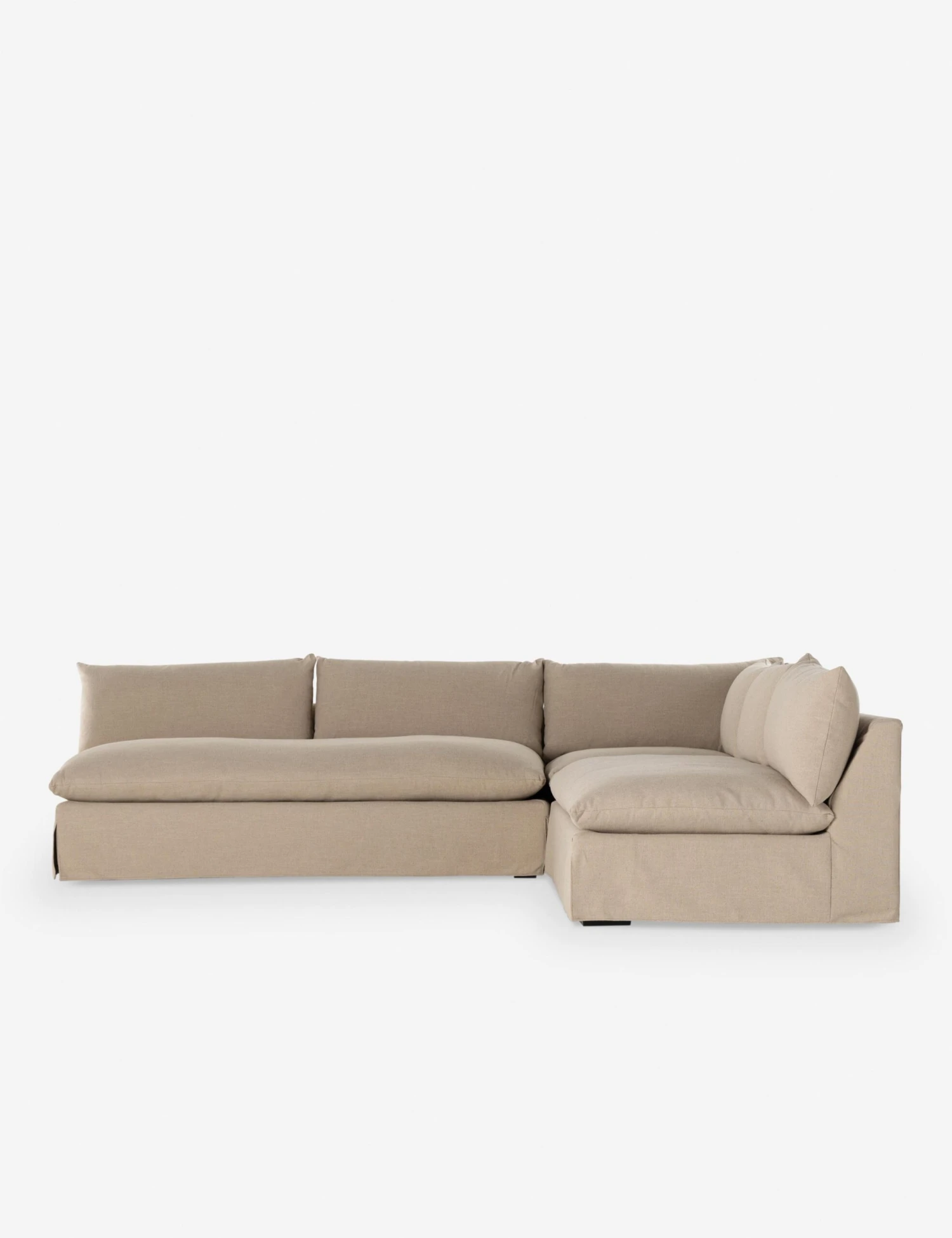 The armless design of this sectional sofa creates an open, inviting look while still feeling chic and modern. Cozy up in this plush sectional featuring loose back cushions, an easy-care slipcover, and plenty of space for everyone.