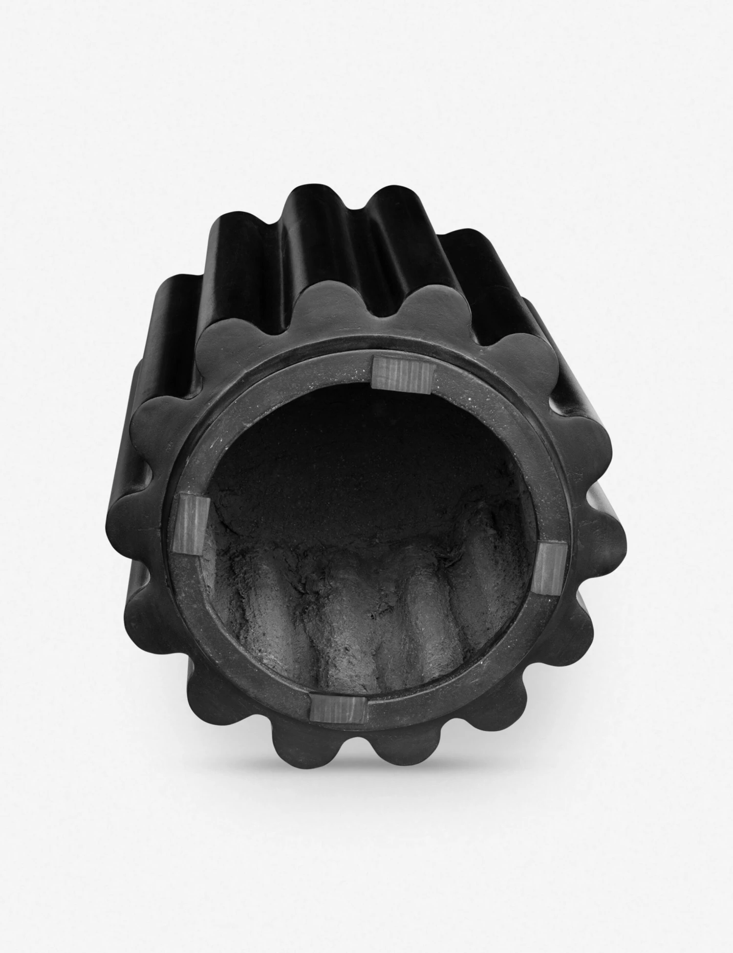 Dramatic lines and sculptural appeal strikingly come together in this concrete side table. The design features a channeled silhouette for an eye-catchingly fluid form. Add a bit of polish to your patio or living room look with the modern appeal of this versatile end table.