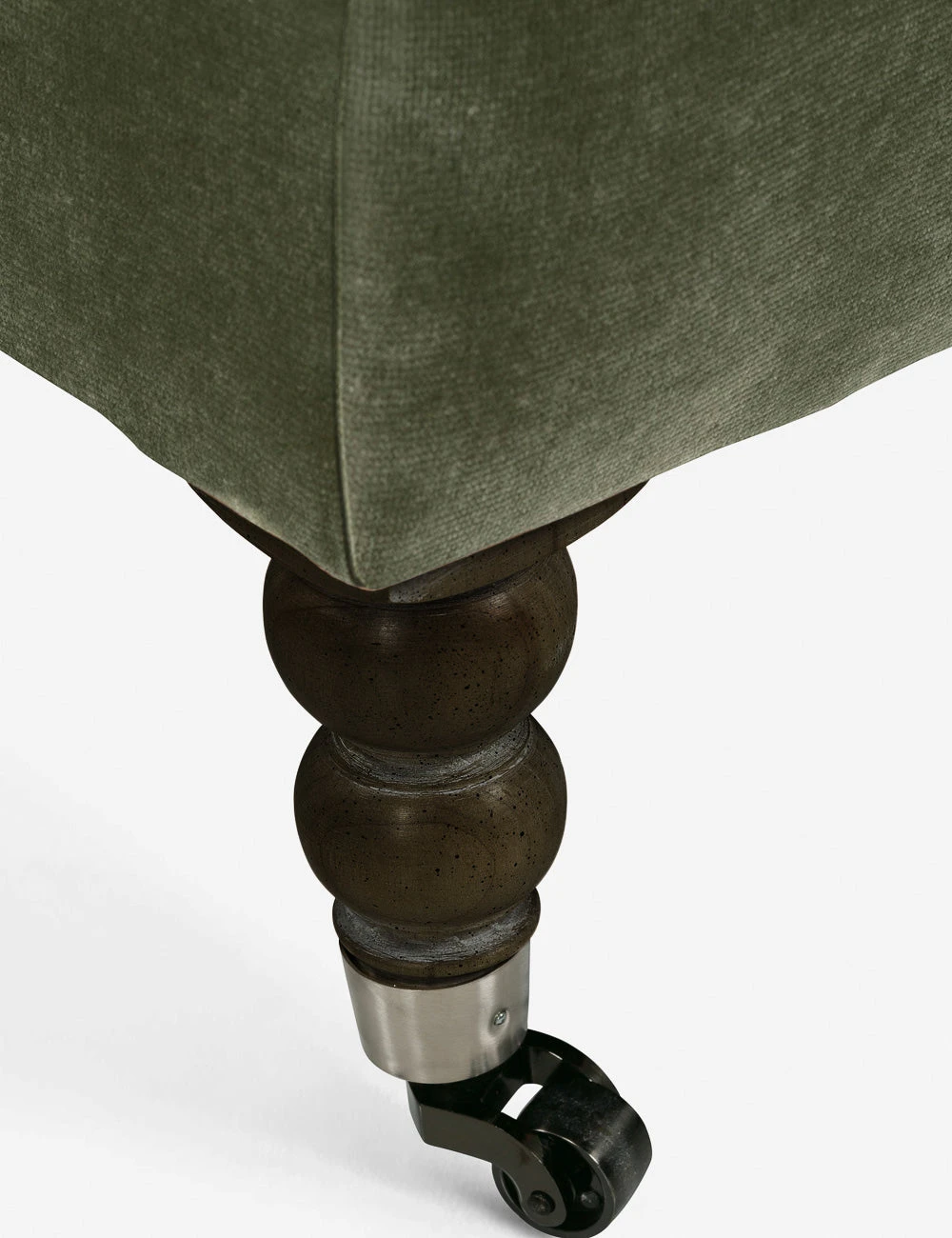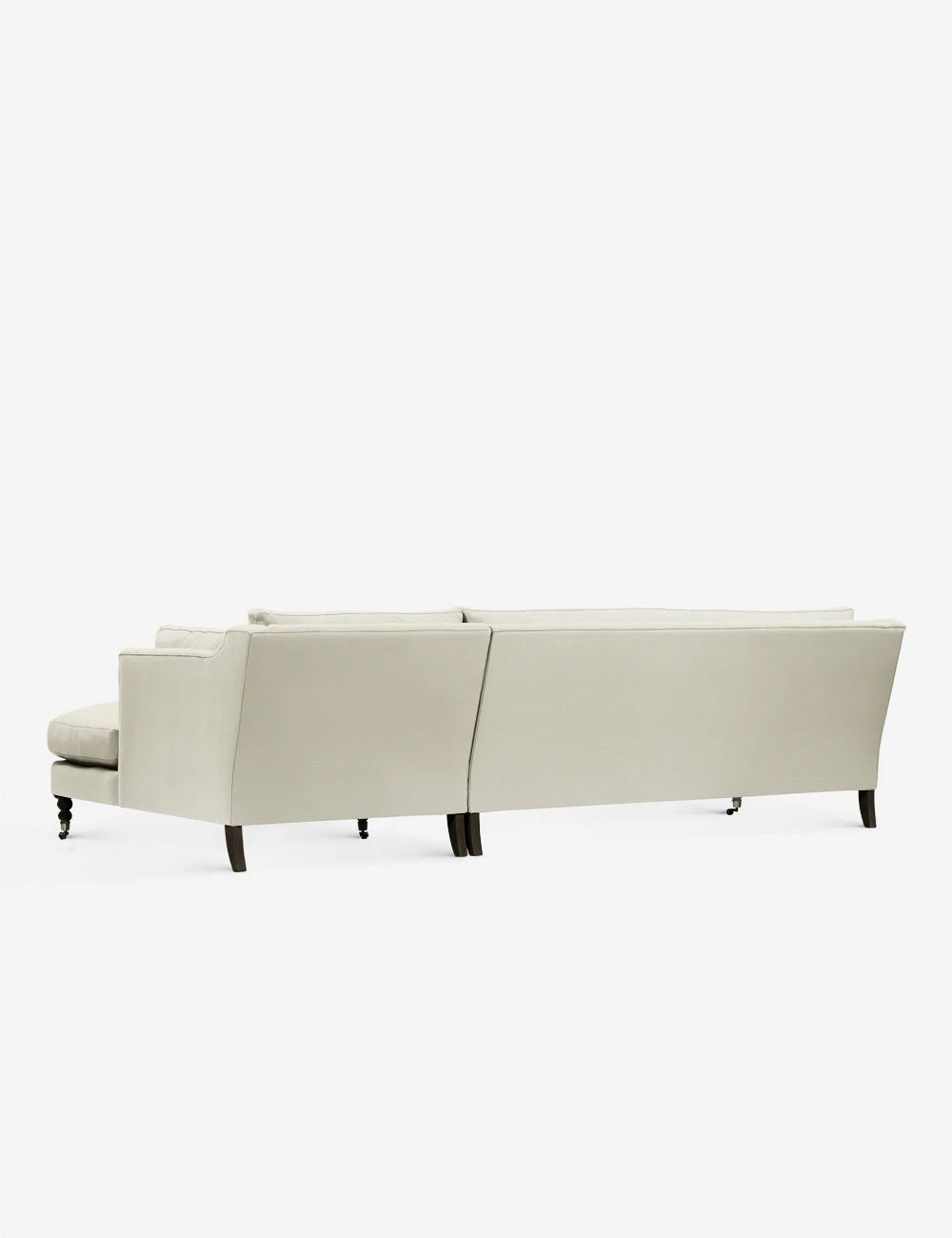 Add a touch of vintage flair to your living room or office with the Fabienne Sectional Sofa. Antique styling pairs velvet upholstery with traditional curved legs in the back and ornate, turned legs in the front. This sectional with a chaise is finished with small front wheels to ease movement.