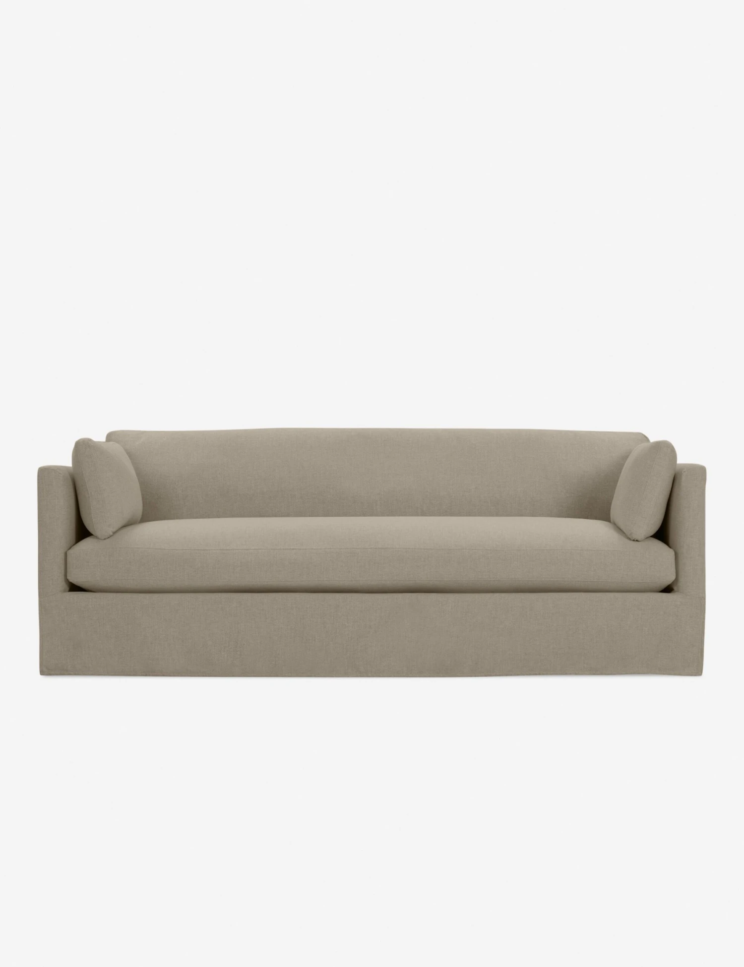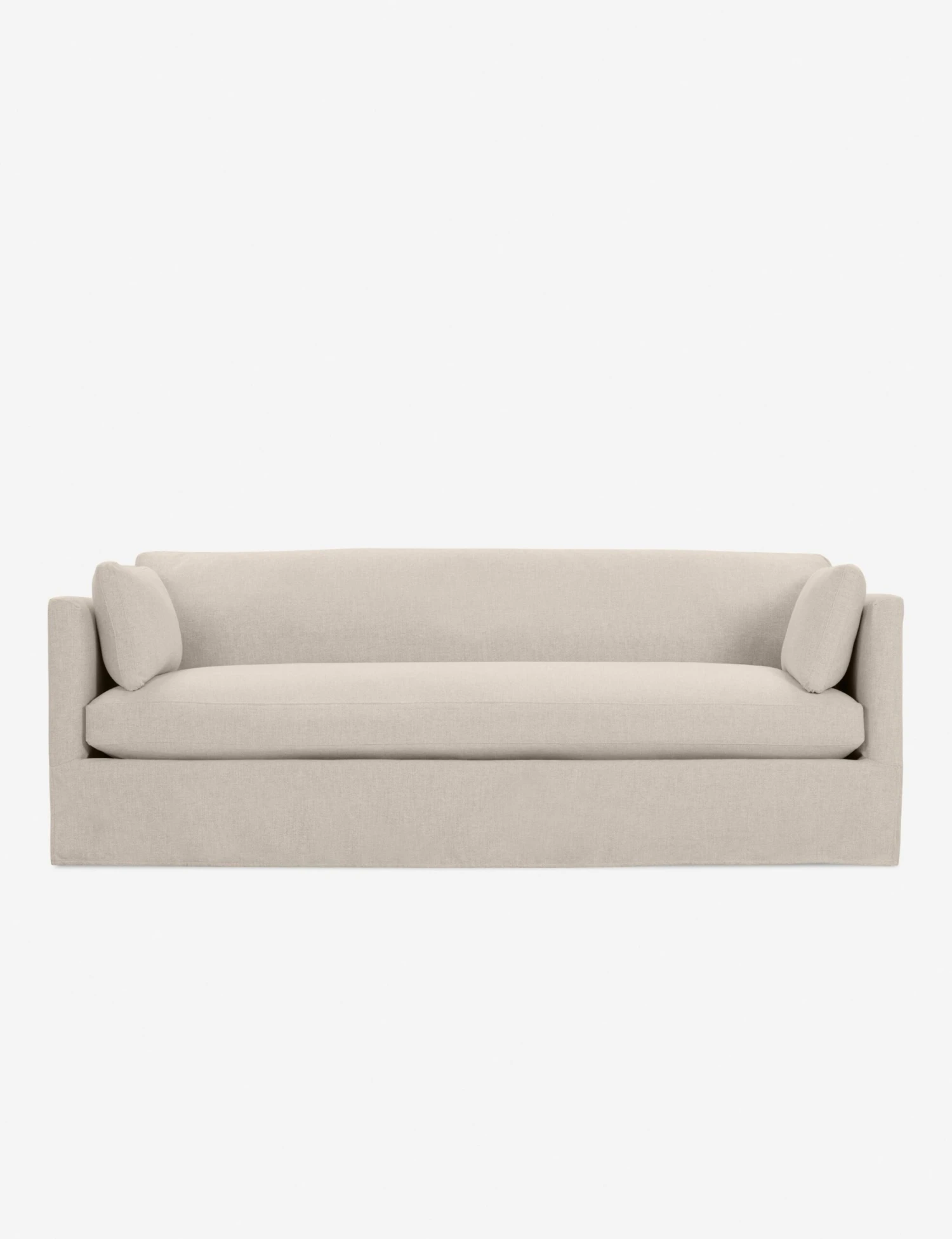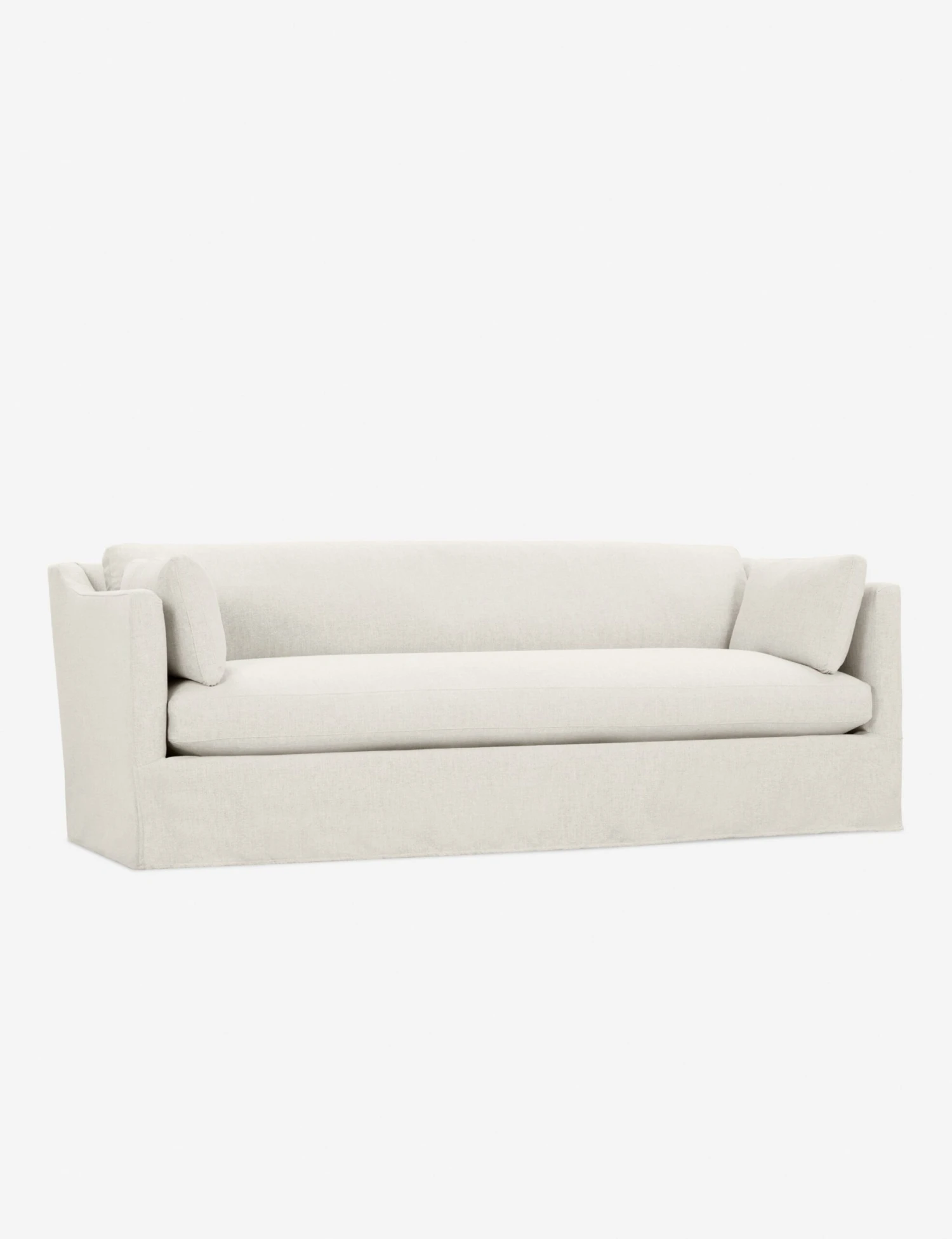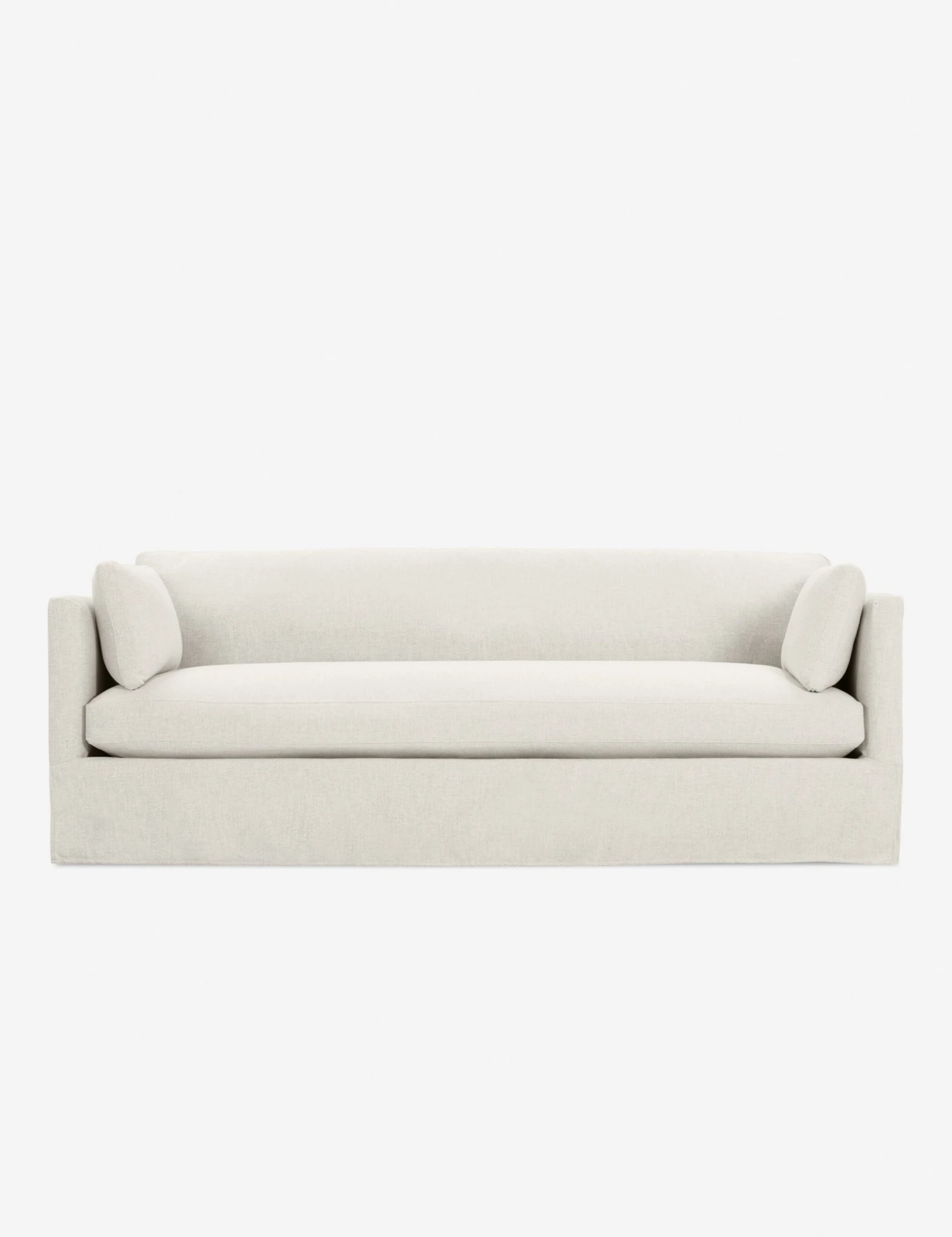 Clean lines on this high-back sofa produce a tailored and timeless look for your living room. This couch’s bolster pillows and thick bench cushion invite you to unwind after a long day. Plus, its machine-washable slipcover is family-friendly, lending you some more peace of mind.