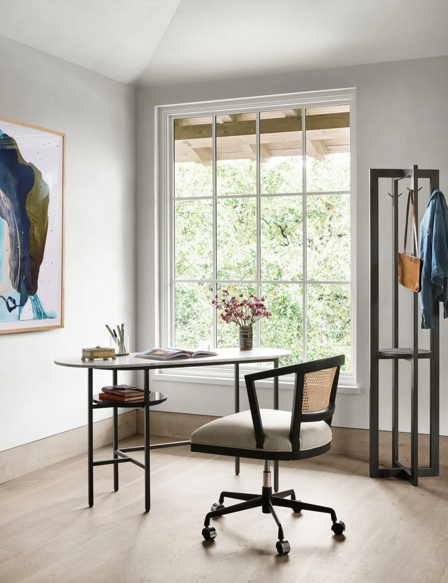 Inspired by the deco style of woven cane, this office chair adds airy, natural style to a room. We love the textured element and the linen cushion adds a soft touch. Plus, the swivel feature makes it much easier to navigate your desk.