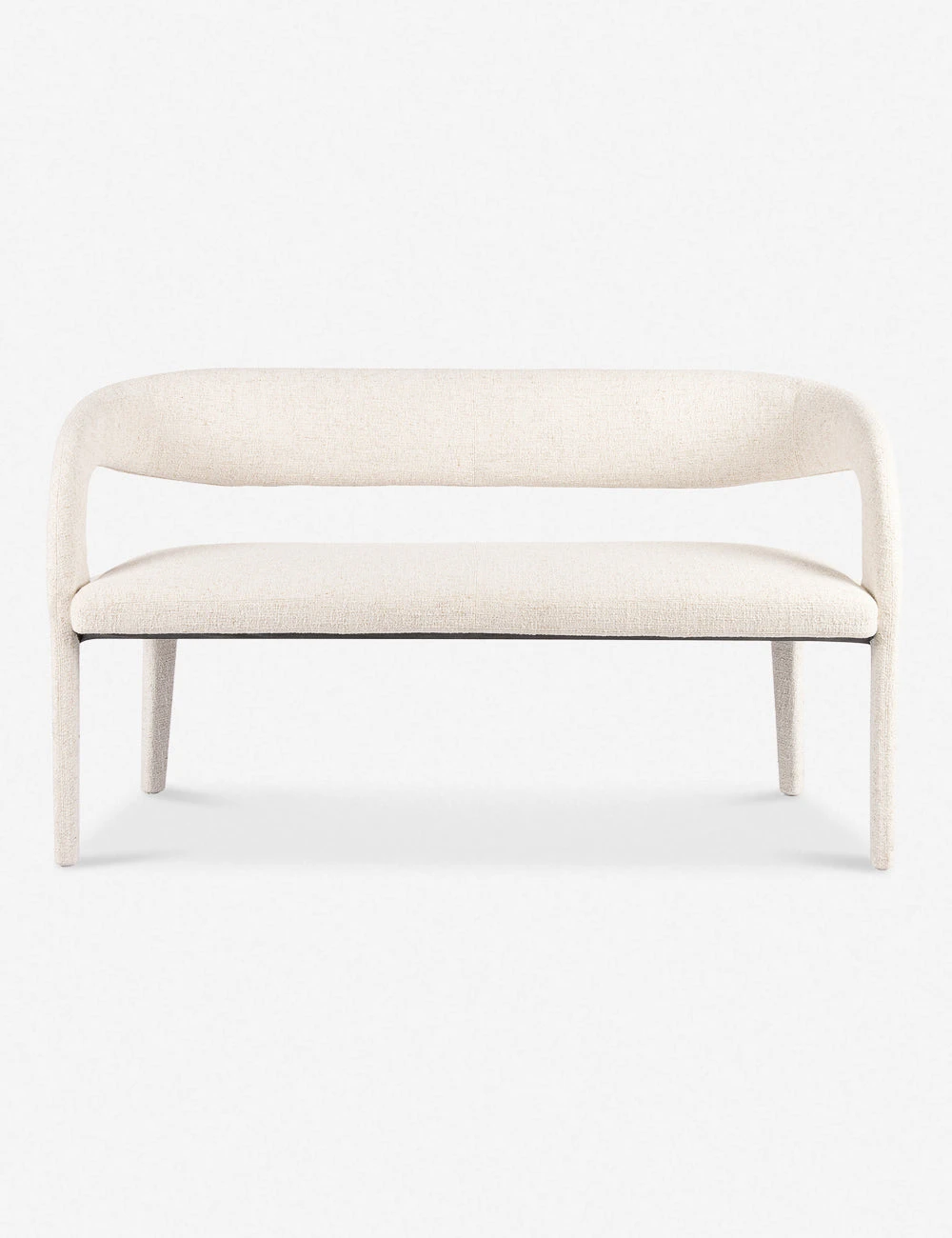 Sculpted lines and allover performance upholstery add a stylish edge to this dining bench. The shapely silhouette will elevate the tone of your dining room or entryway with both modern appeal and a practical touch.