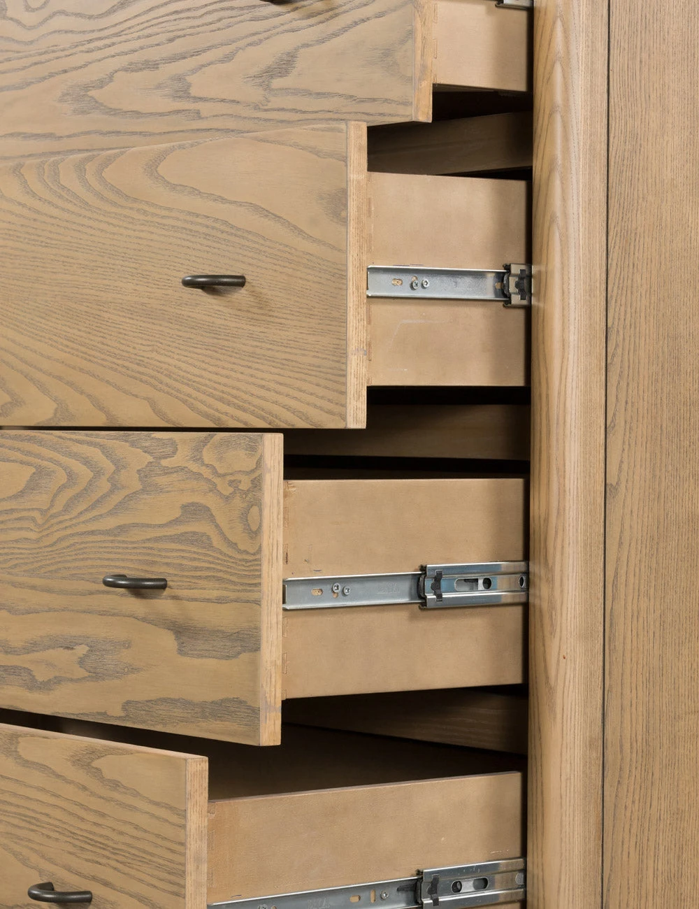 A clean-cut, ash wood design brings Danish-inspired warmth to this Laird dresser. Iron arch pulls complete the look, while the woven cord shelf offers the perfect textural touch. With five spacious drawers, this tall dresser will fashion your bedroom with ample storage and natural grain appeal—plus, the lower open shelf is great for baskets or bins.