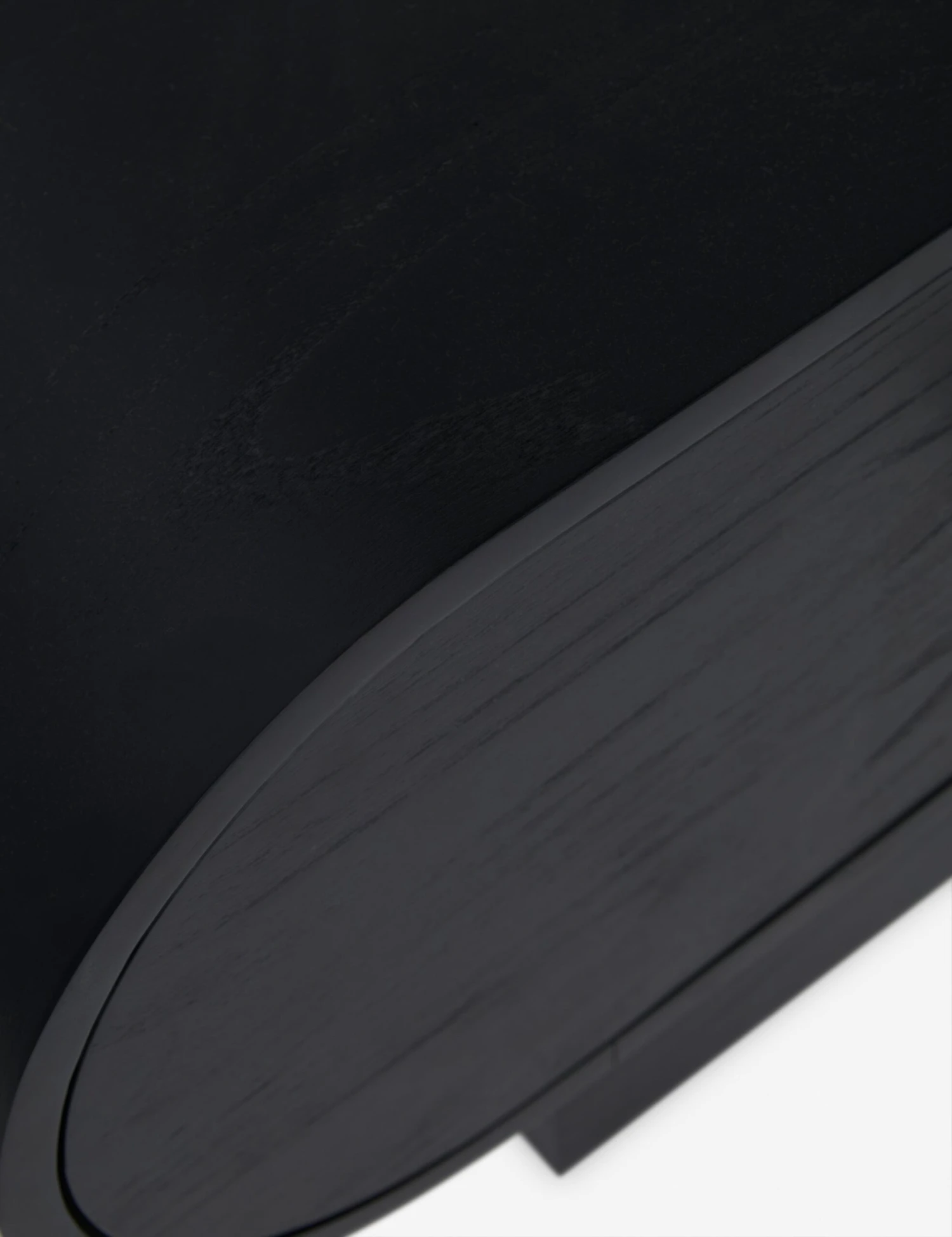 The Laughlin nightstand brings a fresh touch of sophistication to any bedside. The pill-shaped design blends retro inspiration with a black finish and soft close drawers for a strikingly modern nightstand design. This piece is from our exclusive Sarah Sherman Samuel collaboration and features all the trademarks of her warm, edited style.
