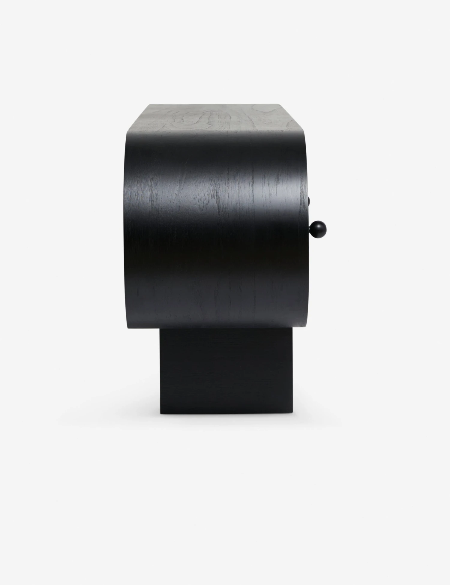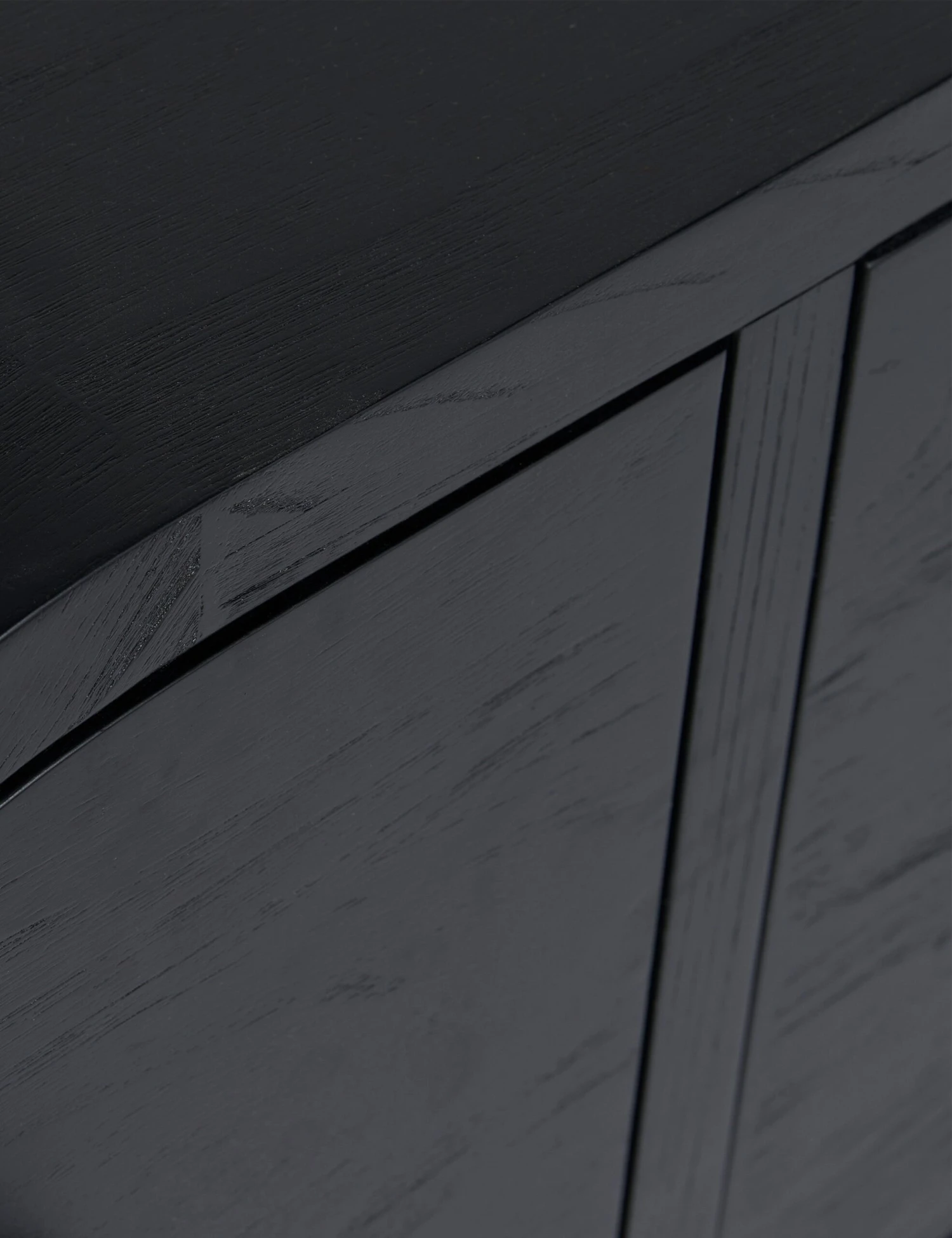 The Laughlin sideboard brings a fresh touch of sophistication to your dining room or lounge. The pill-shaped design blends retro inspiration with a black finish and soft close drawers for a strikingly modern design that can serve as a sideboard or media console. This piece is from our exclusive Sarah Sherman Samuel collaboration and features all the trademarks of her warm, edited style.