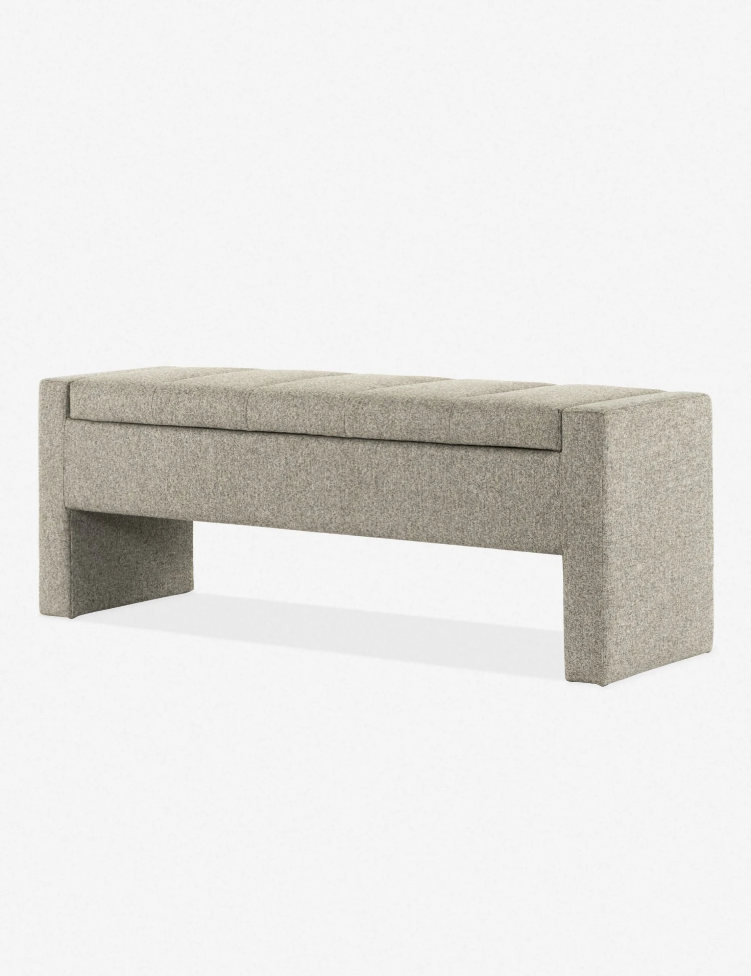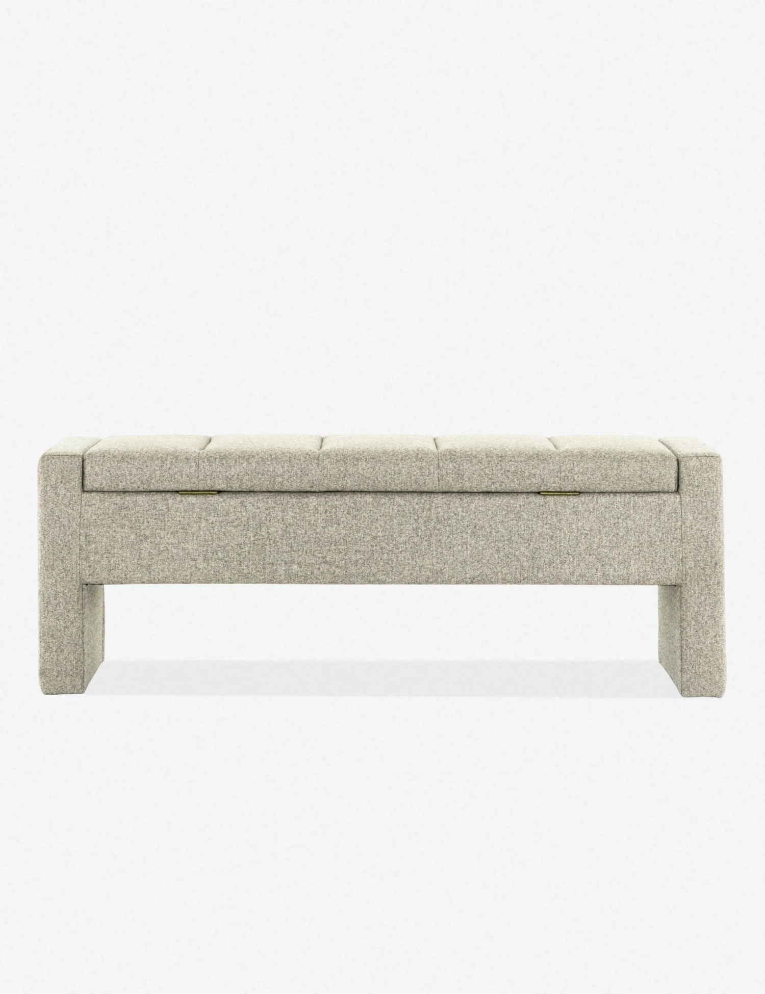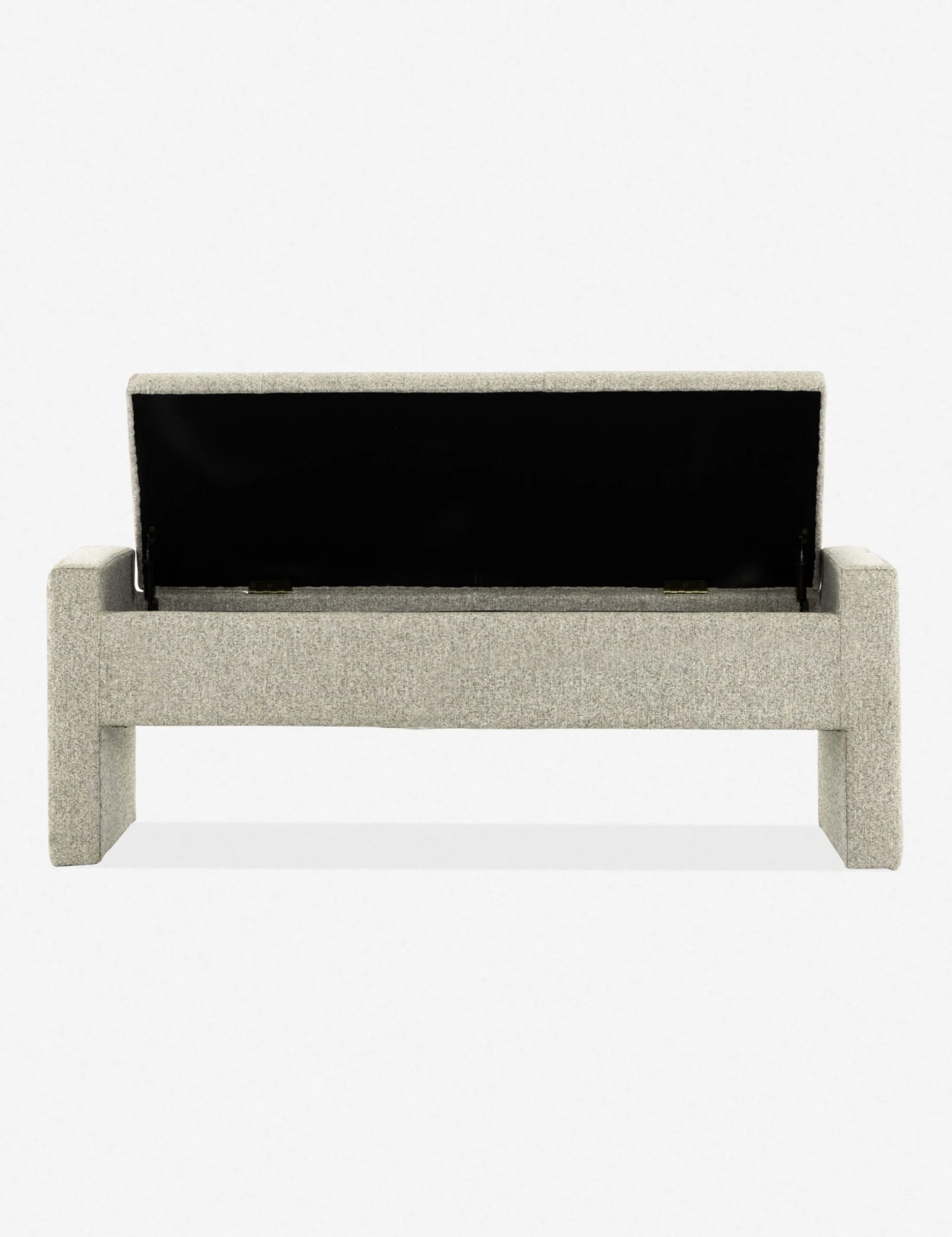 Artfully practical, this upholstered bench opens to reveal trunk-style storage space. In a heathered natural color palette, its streamlined design makes it effortlessly adaptable. Place this bench at the foot of your bed or beside your sofa and store extra cozy throws or bed covers.