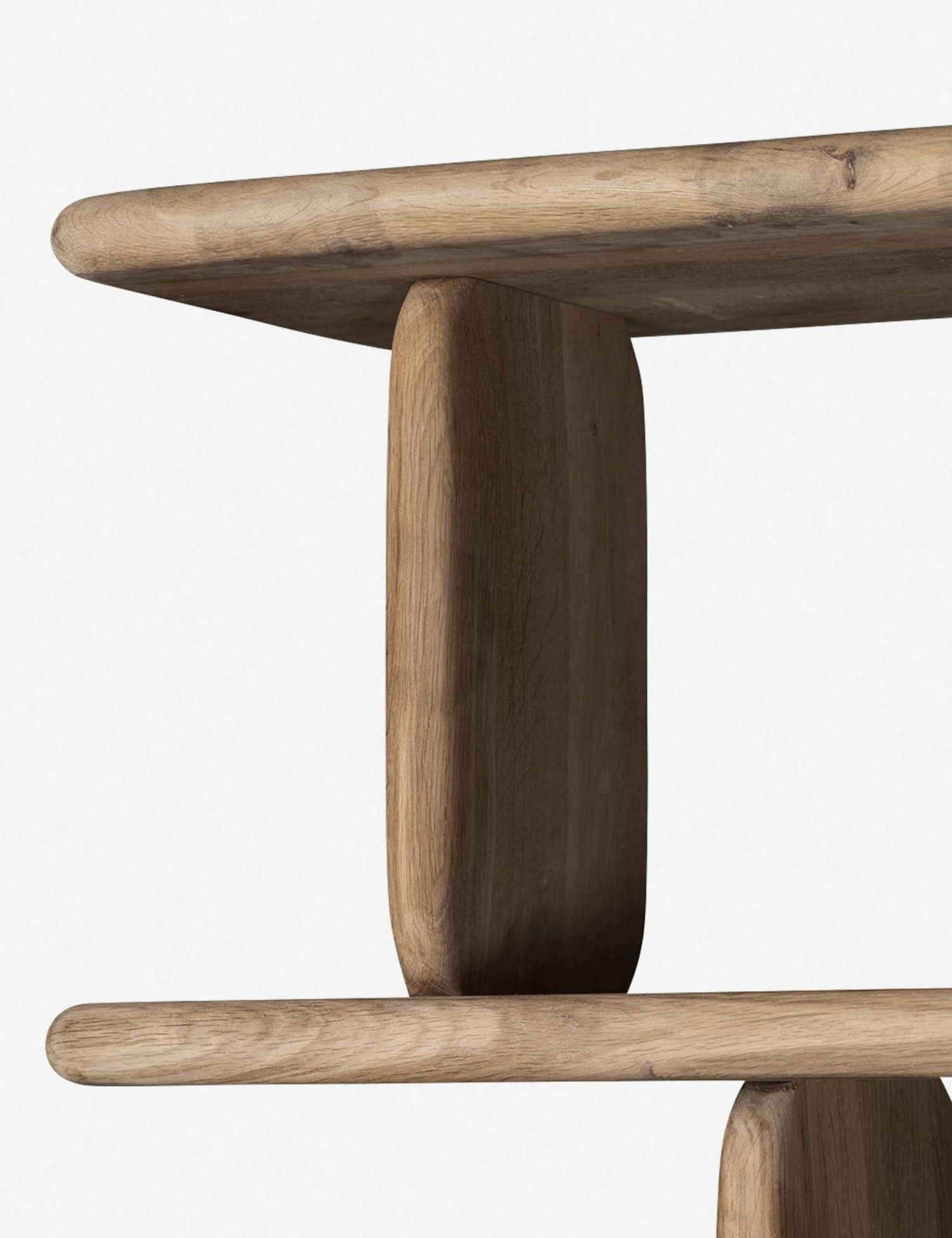 Sculptural solid wood storage? Yes please! This modern display bookshelf features staggered support pieces, with interesting woodgrains and rounded corners for a softer, more approachable look that’s the perfect perch for your favorite books and decor pieces.