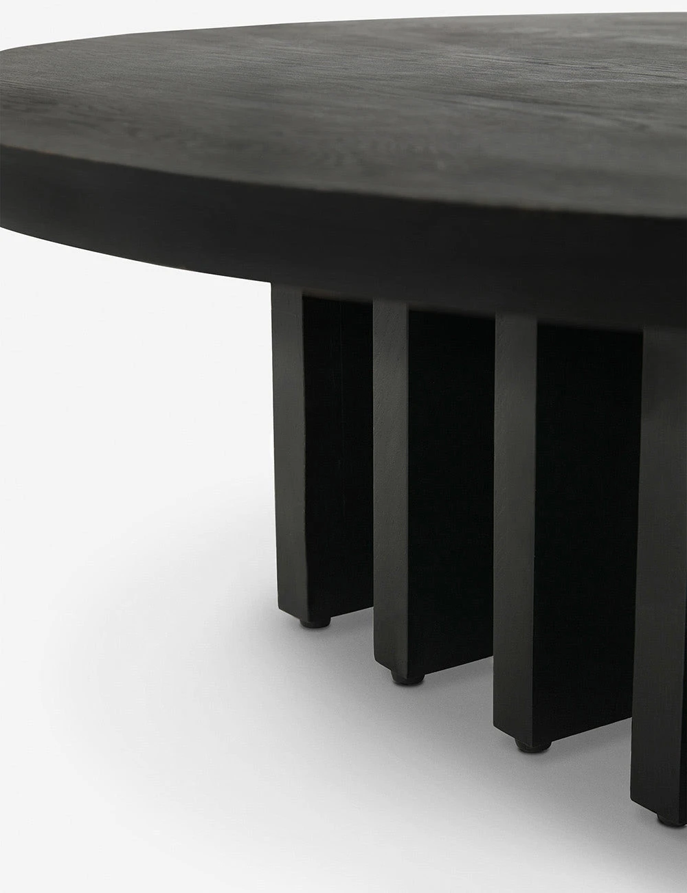 Elevate your living space with a wood coffee table design that pairs a sculptural silhouette with a natural grain texture. Featuring a spacious tabletop and a row of thick slab-style legs, this coffee table is a striking centerpiece for your living room. This piece is from our exclusive Sarah Sherman Samuel collaboration and features all the trademarks of her warm, edited style