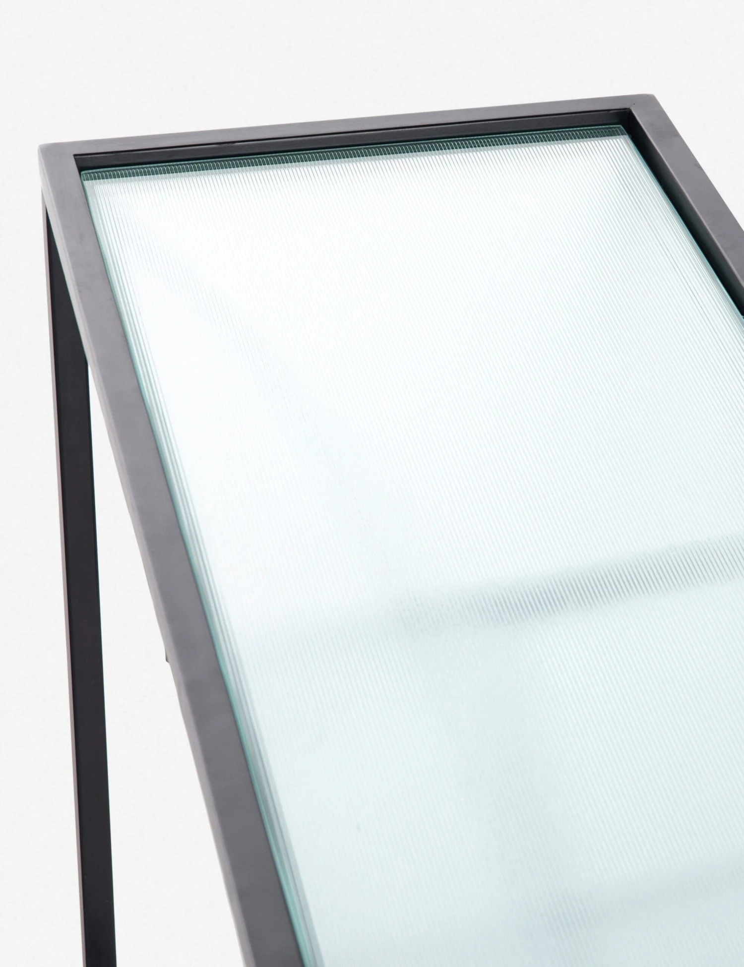 The mixed materiality of this console table feels surprisingly light and airy with its open frame, fluted glass top and shelf, and polished white marble base. That shelf elegantly suspends down from the black-finished iron frame and all three levels provide ample space to display your favorite curios and books.