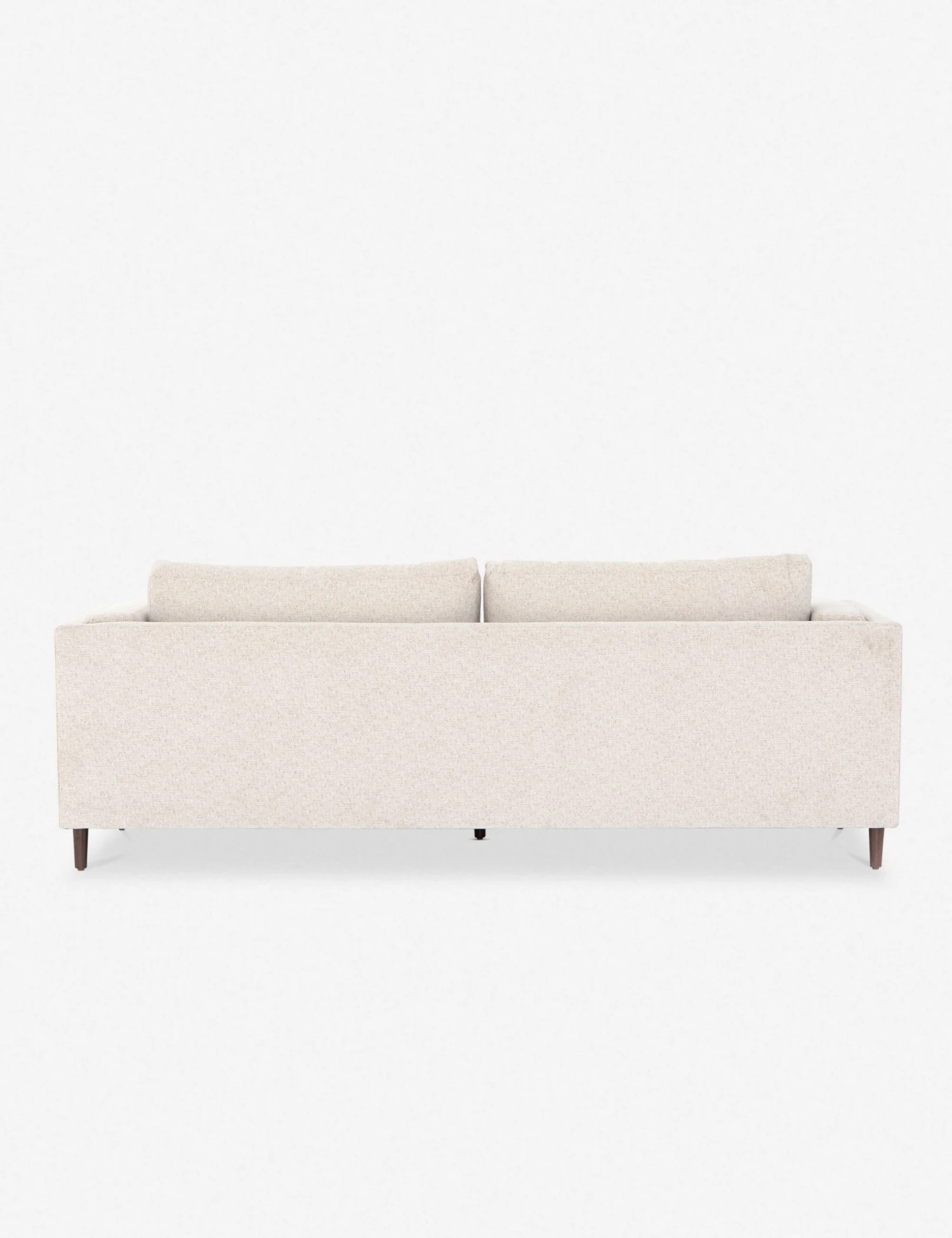 Clean, layered lines inspire a delicate elegance in this dynamic sofa. The tapered, auburn-finished legs offer an airy elevating touch that complements the light-toned, performance-fabric upholstery for a visually light profile that belies a spaciously substantial living room couch.