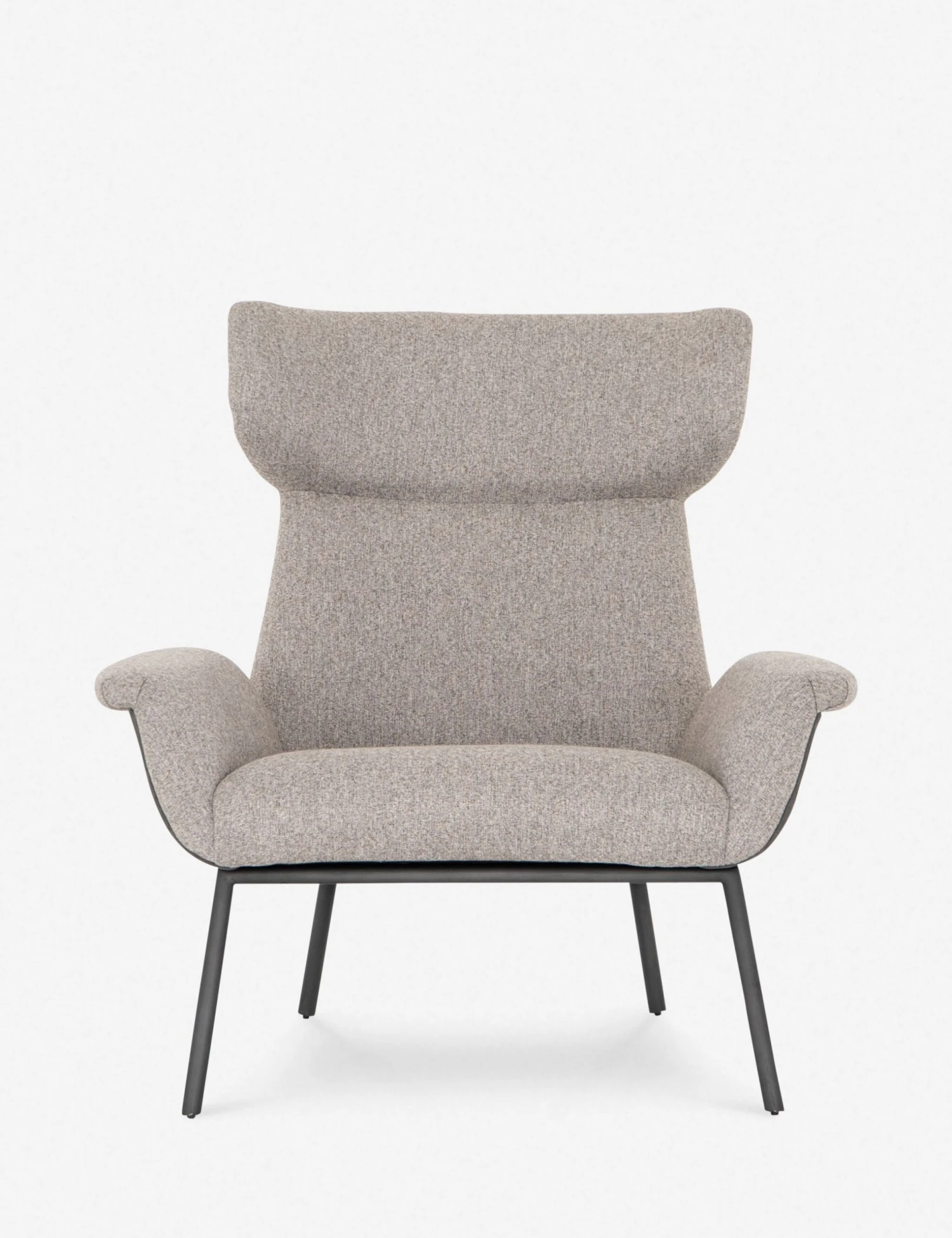 Classic wingback style is given a fresh update with this dramatic accent chair. Clad in a two-tone upholstery of herringbone-like fabric and supple top-grain leather, then finished with grommet straps at the sides and back, this chair is made for comfort and tailored for a refined aesthetic that blends traditional touches with modern design.