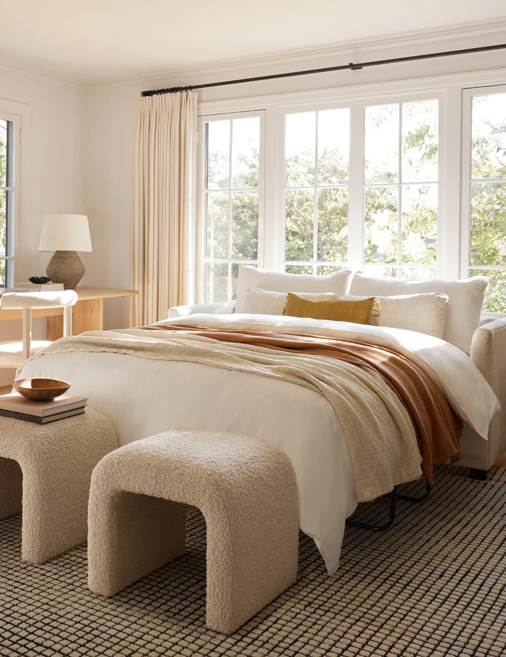 Our Tate Stool offers a streamlined silhouette in a compact design. Its clean lines and bespoke upholstery will fold seamlessly into your decor, bringing a luxe touch to a small space. Partner two stools together for a dynamic and balanced element.